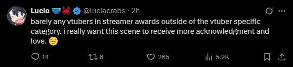 Large indie vtubers have more net fans, but they are outnumbered by 2views by the thousands. This is a thread for the VIP, regardless of what language they stream on.