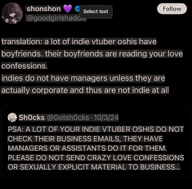 >hundreds of unicorn edits get made of herSNORyS, which grew out of FaumeiRyS excluded Ina and Kiara as well, but you would be laughed out of the thread if you tried to twist Ina and Kiara as “bad girls”. Especially when we circled the wagons to defend Ina after her one cover that the beggars tried to blow out of proportion
