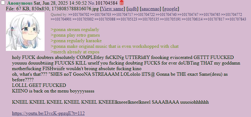 >several acrylic standees and full on dioramas>several wall scrolls>several small items with art on it ranging from holographic tickets to chinese new years red pocket envelopes>a Youtooz statue>a goddamn nendoroid (with talks for a second)>a goodsmile plush>a larger retro plush>a custom HYTE pc case and keycap set>a goddamn nendoroid>two themed beanies>a happi>a hot dog themed shirt for your pet>goddamn croc jibbitz>a fucking christmas sweater>a deskmat>a patch >several shirts and acrylic merchandise related to the FantomeThief concert >a cooking set featuring a fucking damascus custom made chef knife (with ironsights), a maple cutting board shaped like a dragoon, and a bento lunchbo>a PS5 controller from one of Japan's biggest gaming gear companies>multiple voice packs >several clothing drops with JeanaDraws. That's the kind of output I'd expect from an ex-corpo vtuber still taking the vtuber job seriously, especially since she takes all of that money and puts it into visible, high quality projects like concerts, 3D assets, art commissions, music videos (she's leveled up from bad singer to mediocre; she's trying), animations, clippers, paid mods, and events involving dozens of participants and staff.