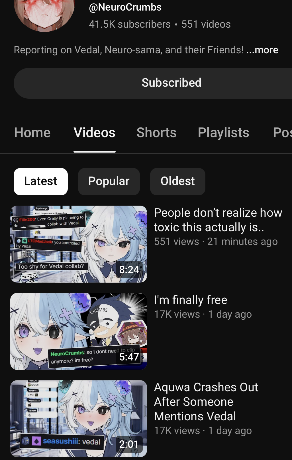 https://www.youtube.com/@OfficialNeurosamaClips