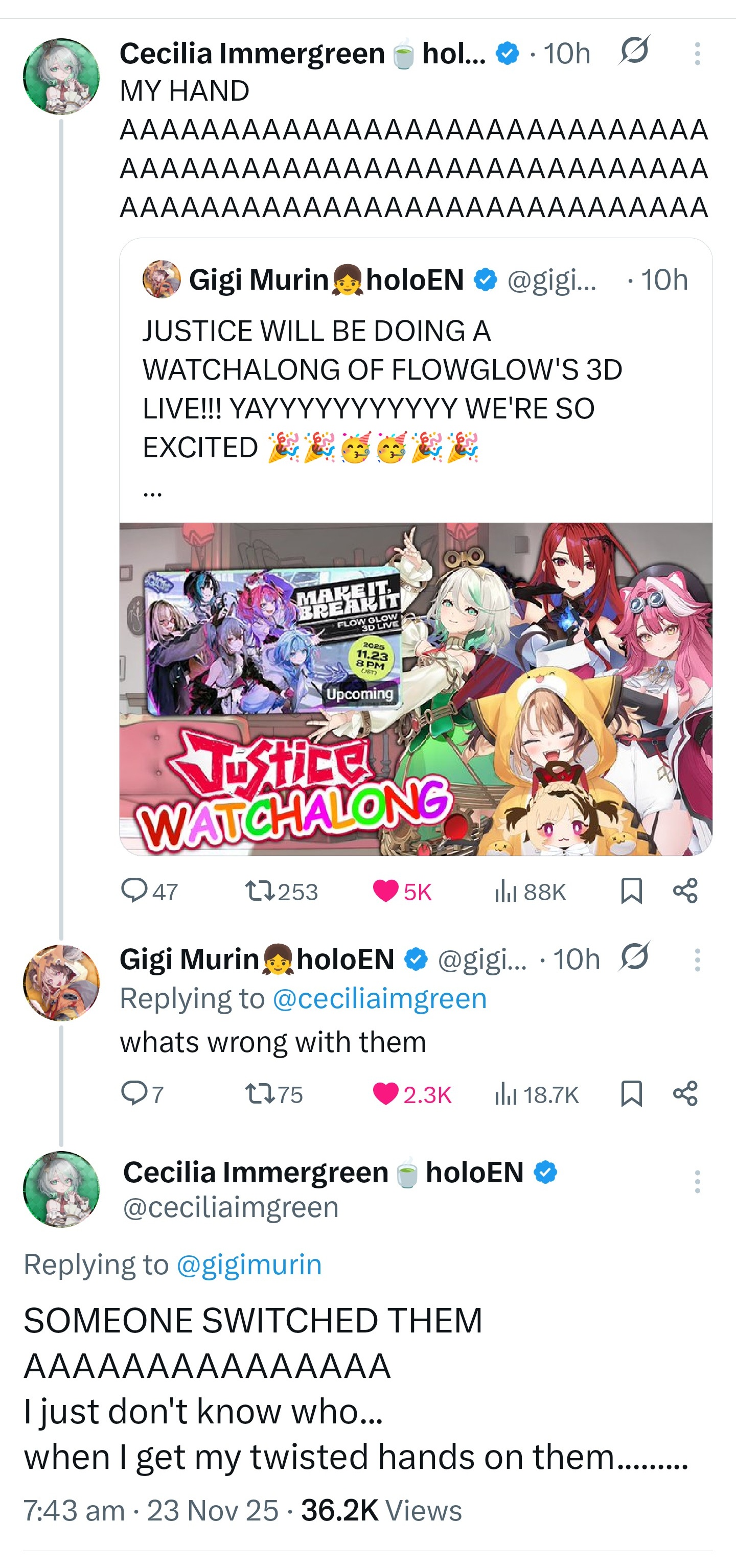 >where the fuck is EN5They just announced openings, calm the fuck down. People have also theorized they won't announce EN5 until early next year, based on recent graduations and a certain debut order Hololive may want to achieve: