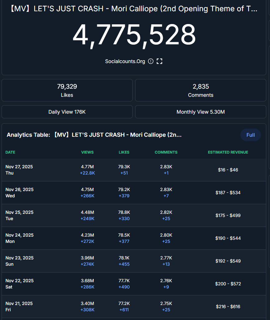 11/19 - Kronii - Lorelei and the Laser Eyes: 10,956