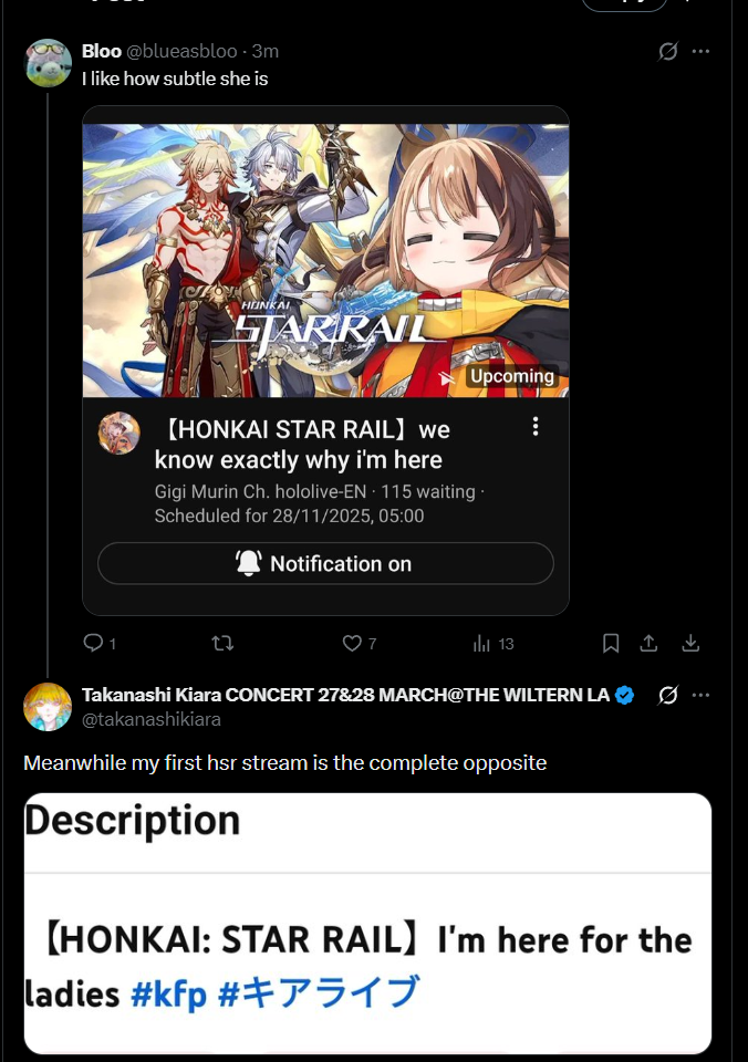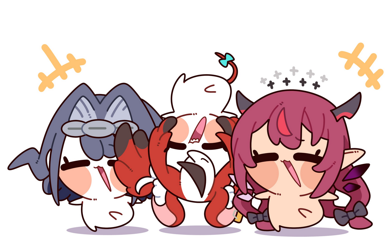 1x: Nerissa, Cecilia, Dokibird, Ina'nis, Kiara, Raora, Meloco, Claude, Luca