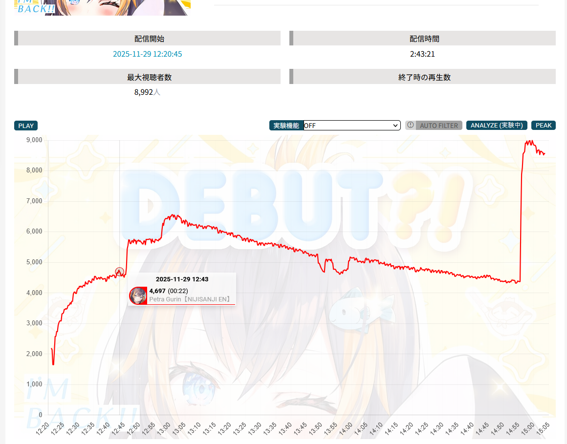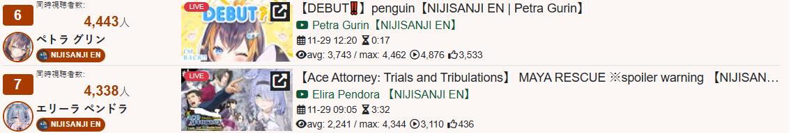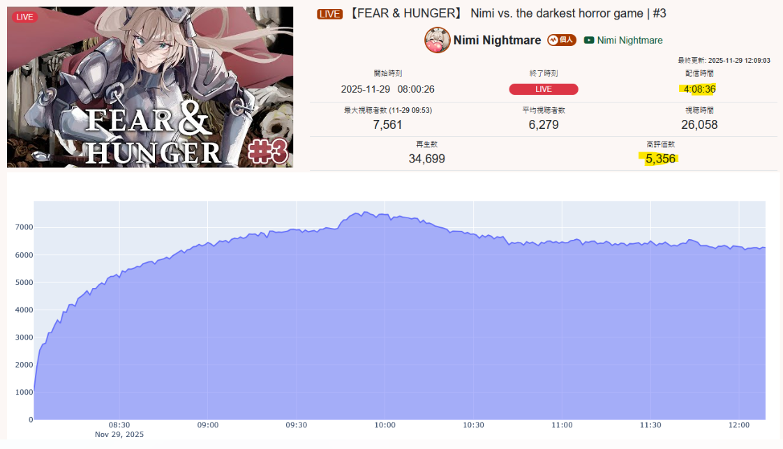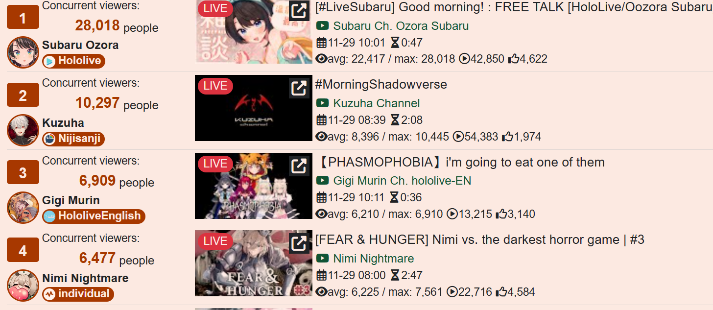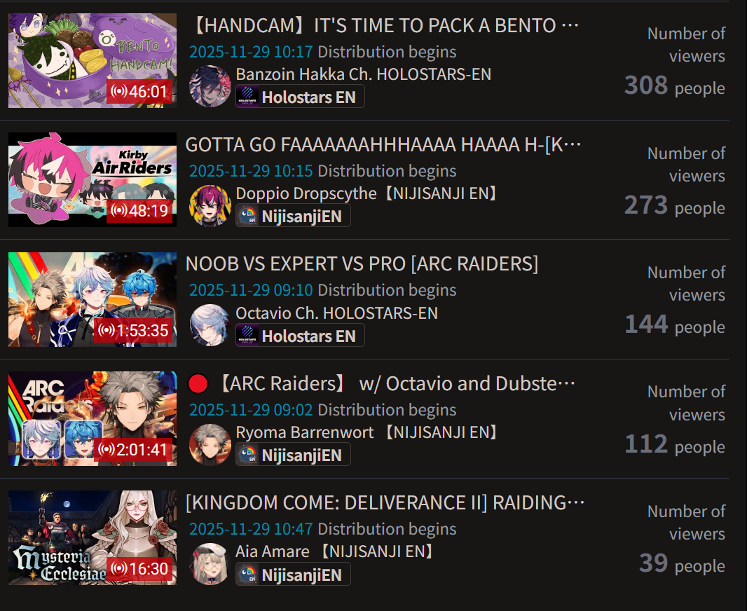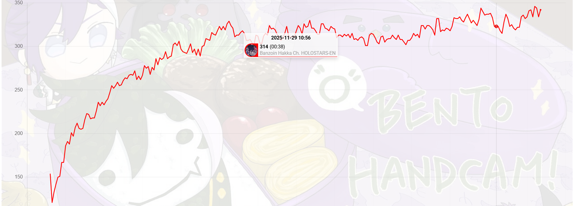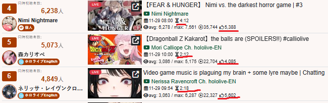 And I think I realized something: The curve inclines for 1, 2, 3, up to four hours, and this depends on the number of NijiEN streamers active at the moment.