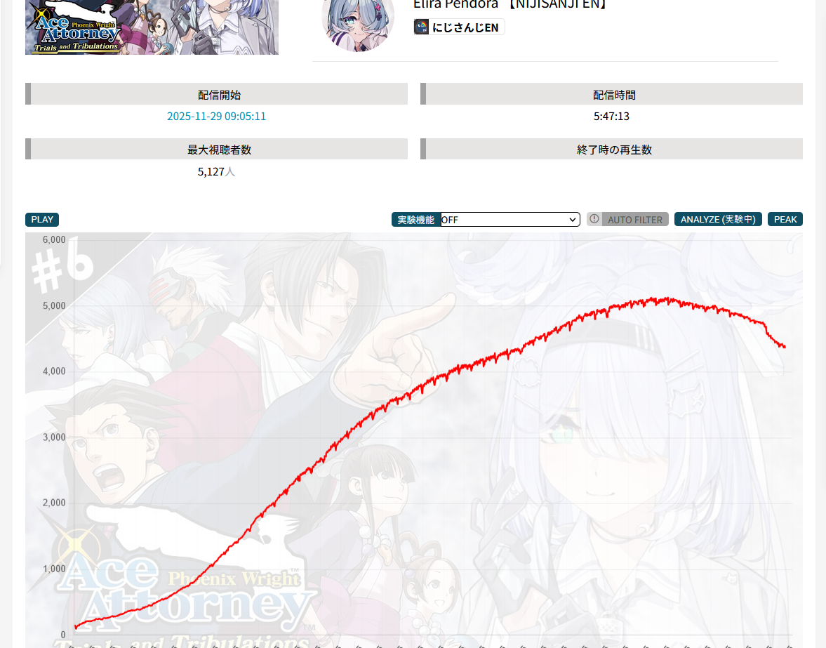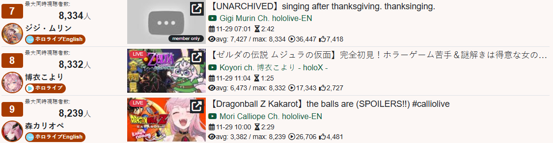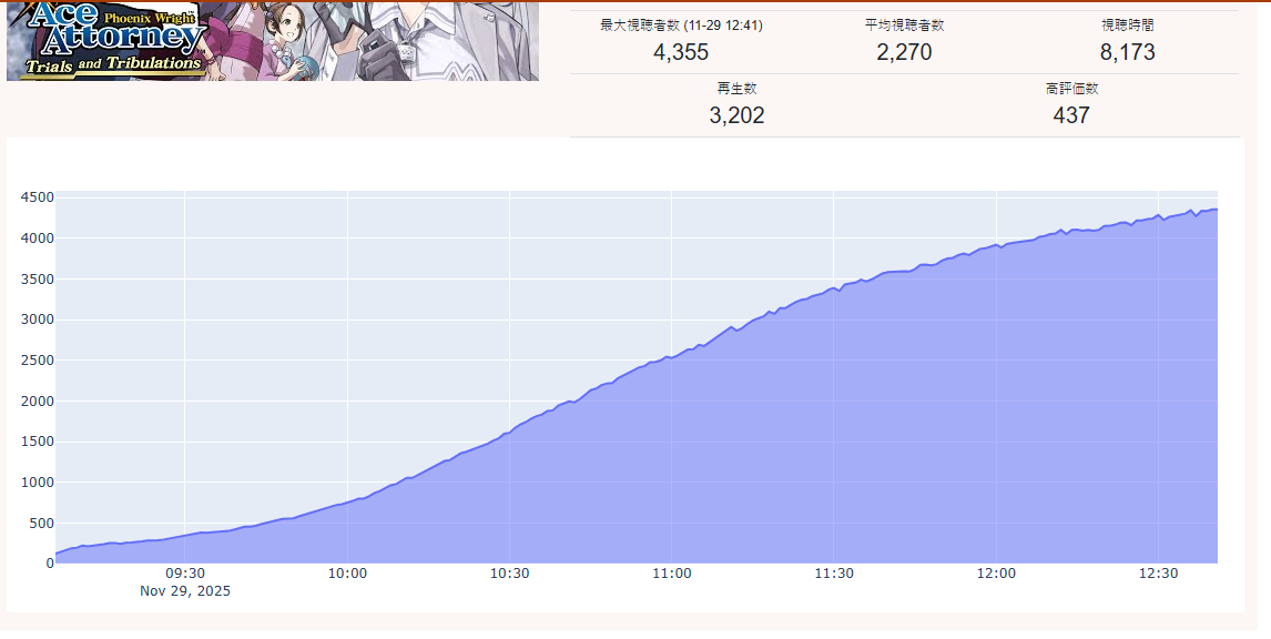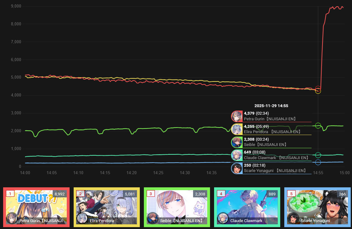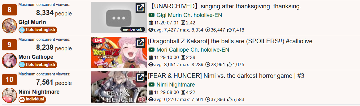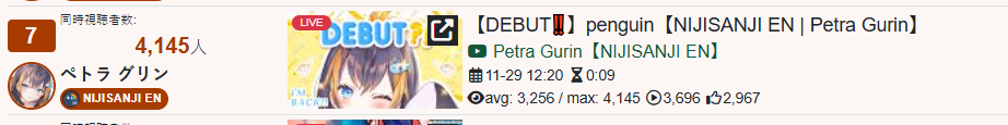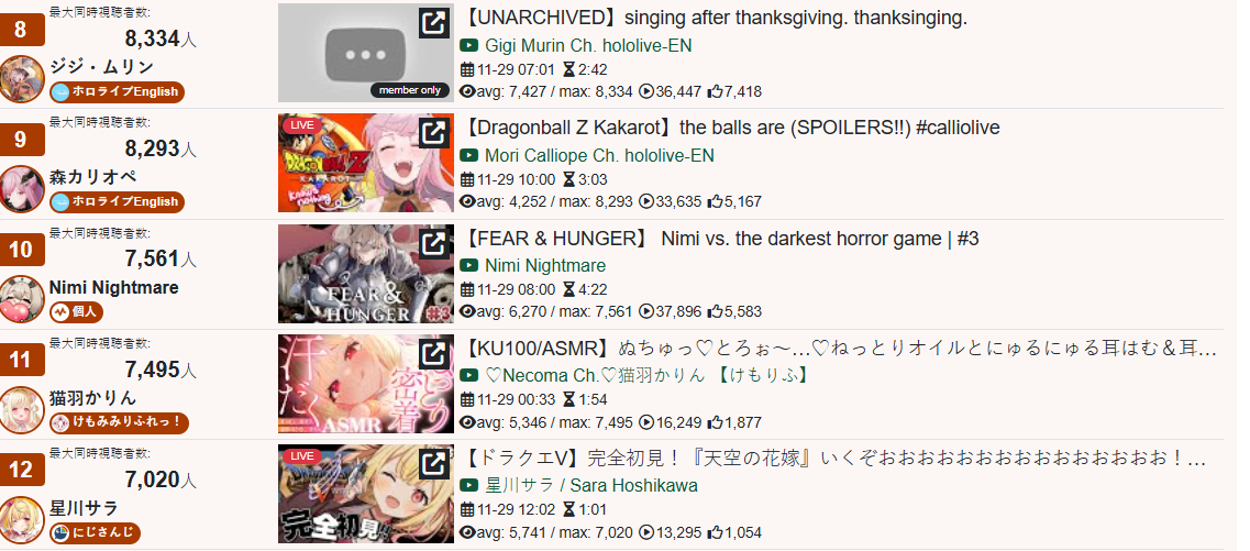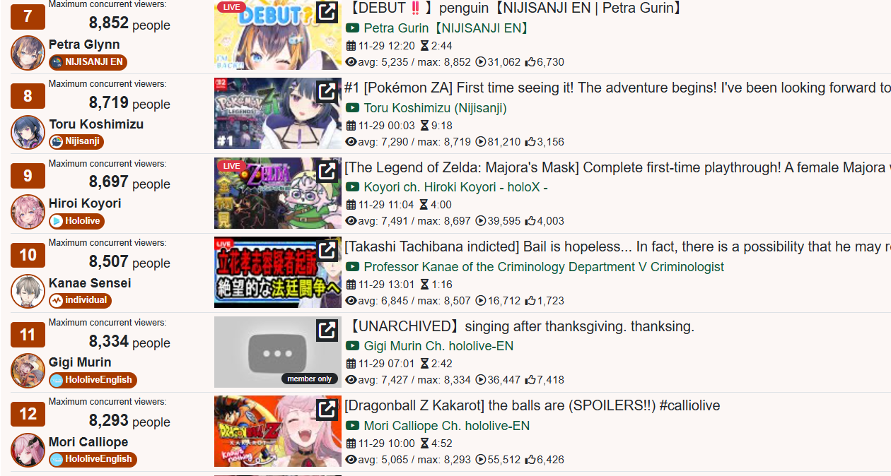 And I think I realized something: The curve inclines for 1, 2, 3, up to four hours, and this depends on the number of NijiEN streamers active at the moment.