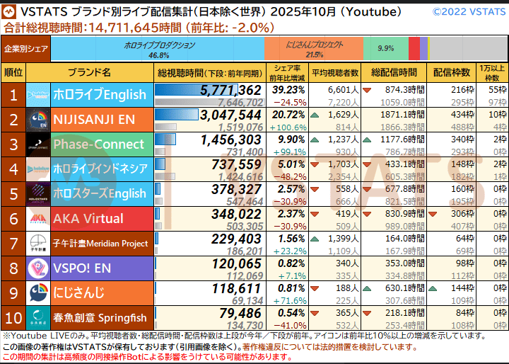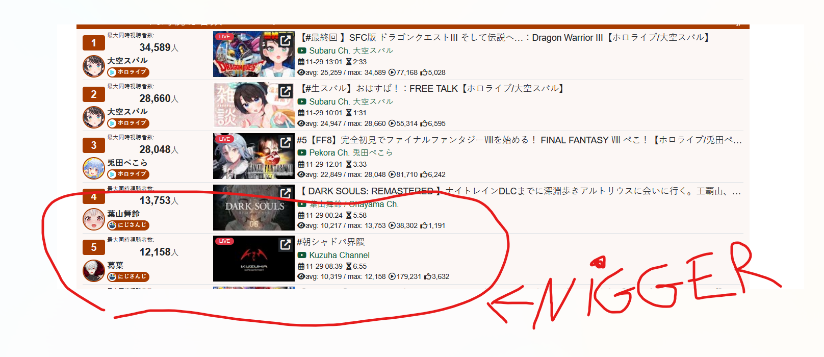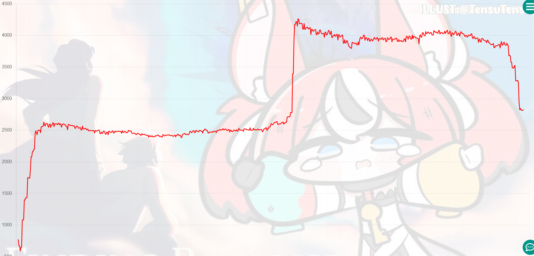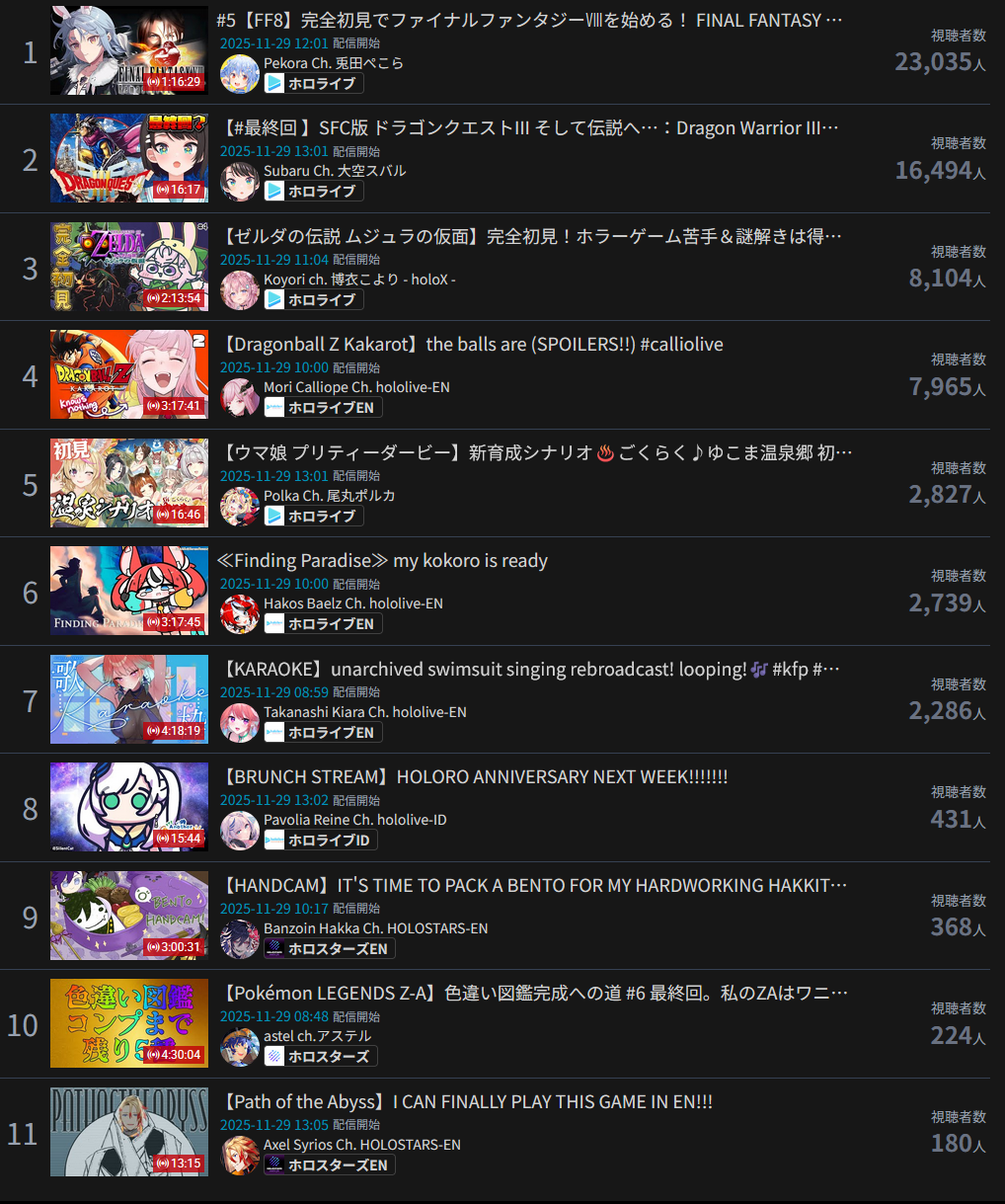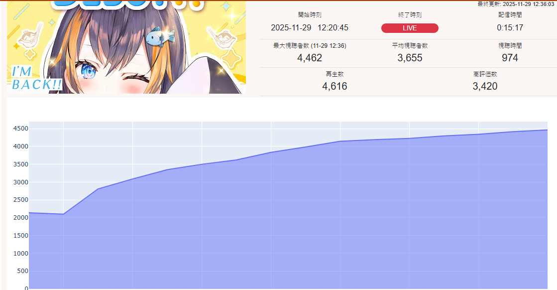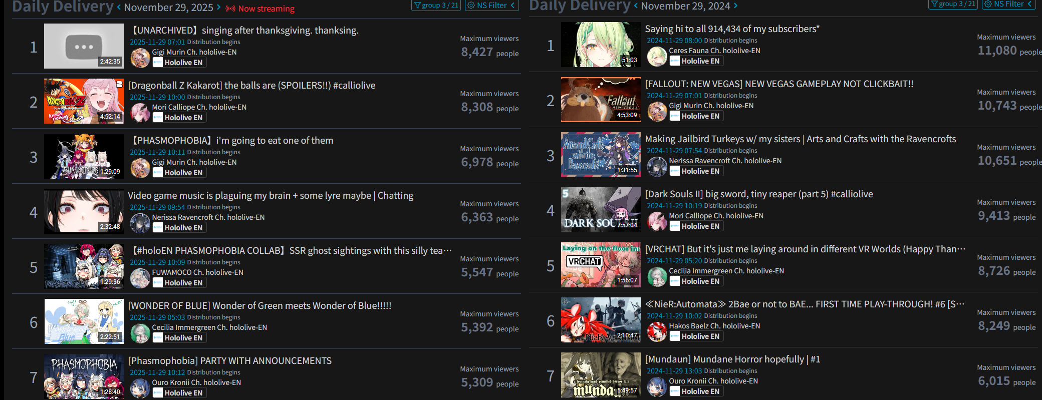 And I think I realized something: The curve inclines for 1, 2, 3, up to four hours, and this depends on the number of NijiEN streamers active at the moment.