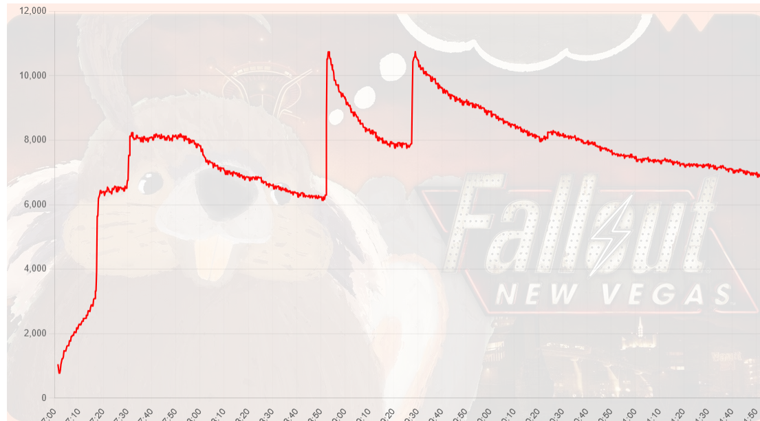 So the more streamers currently active, the shorter the incline (although the number of bots seems to stay the same, it just means the graph will look more gross)