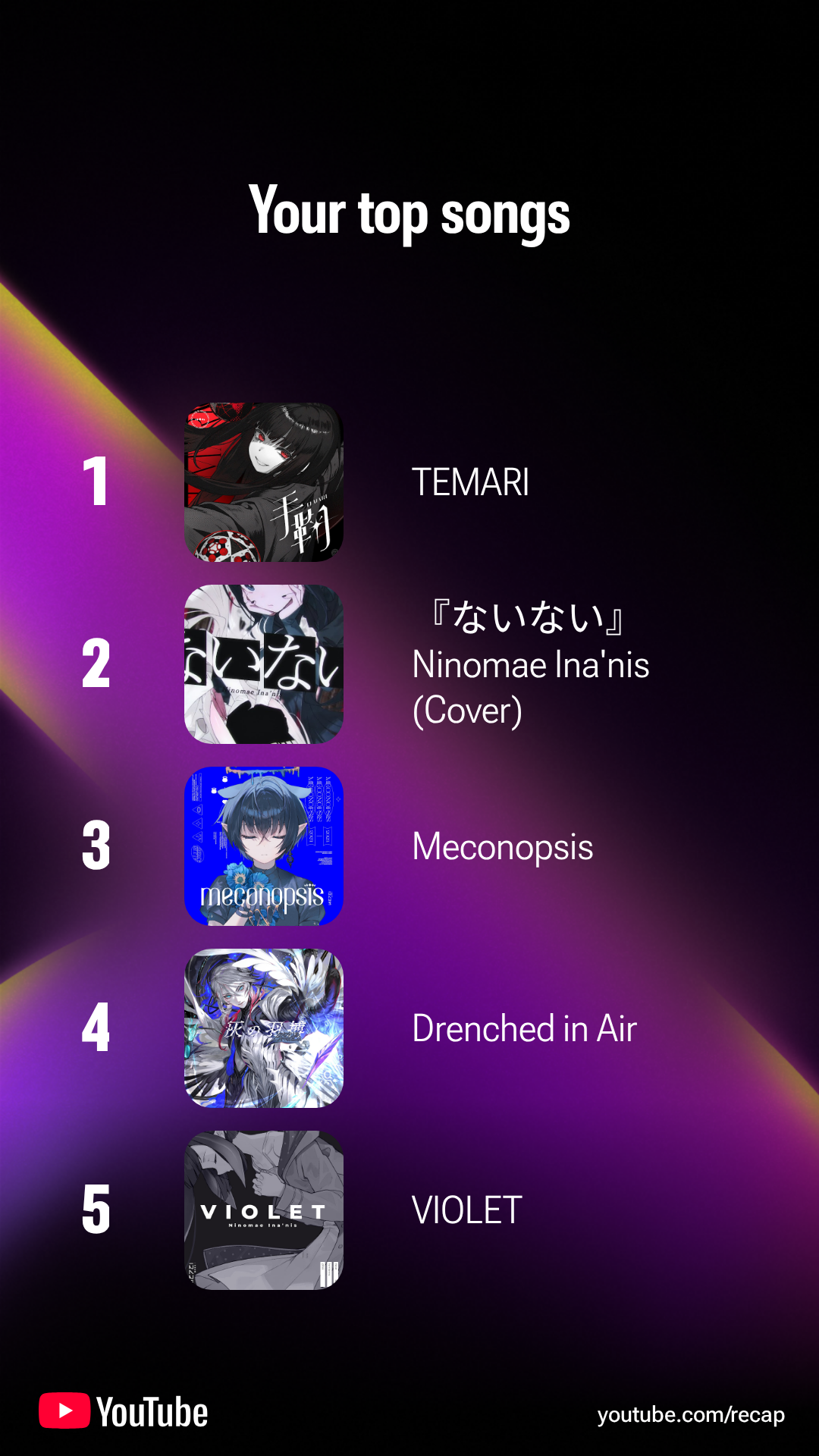 『VIOLET』: https://www.youtube.com/watch?v=8ZdLXELdF9Q