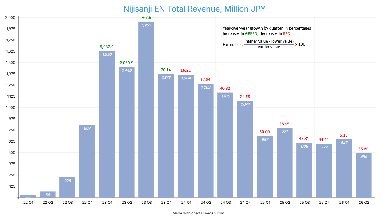 >>107575412BTB didn't really "revive" the branch, they only delayed its downfall by a few months. Kinda like how AR Live prevented the Q4 2024 revenue from dipping below a billion yen (1,075 MJPY with vs 916 MJPY without) but was a one-time thing and couldn't salvage the subsequent quarters.