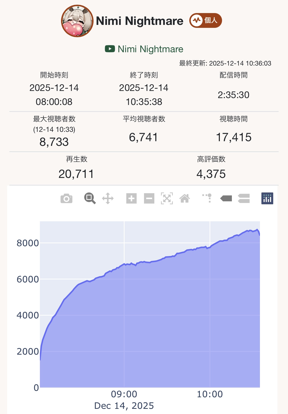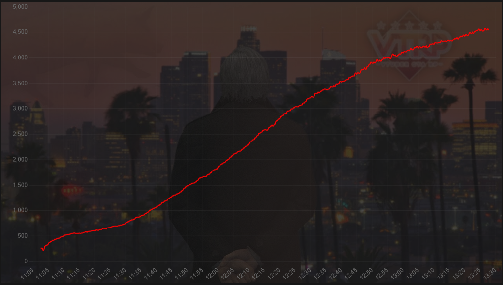 This isn't like the streams with hundred of likes after 8 hours and 20-30k ccv, with a few hundred chatters and less then 10 chats per minute.