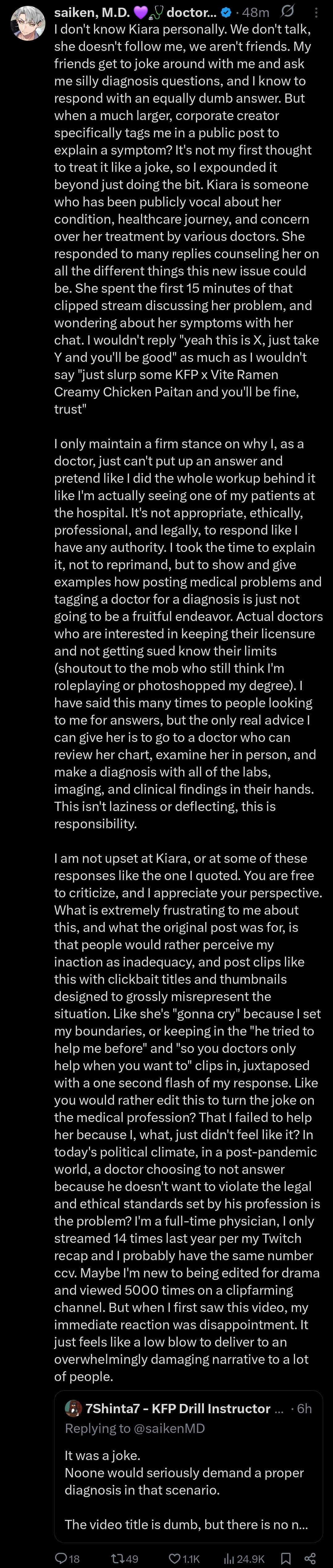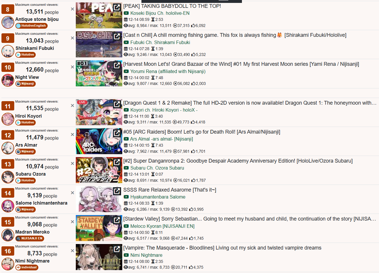>>107658933Trying to one to one compare metrics of a stream that just ended to a stream from a month ago, which will have had variable growth based the algo. Should be enough to make even you realize how stupid you're being. That's incredibly basic, and really invalidates any argument you're trying to make.