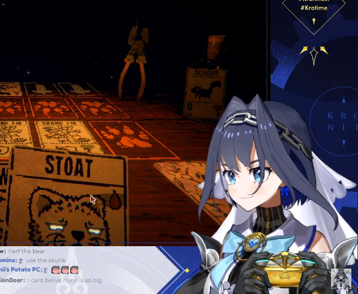 https://www.youtube.com/watch?v=YWchjjm-YxwKronii's breaking everything trying to play this card game called Inscryption as the game noticed that she was having a good day today, and a Kronii that isn't suffering isn't a Kronii life loves. Luckily, life had pity on her and decided to fix itself after five minutes of fiddling around instead of the usual 30 so now we get to fully see her use the heart of the cards to defeat her opponents with her deck of the pharoahs.
