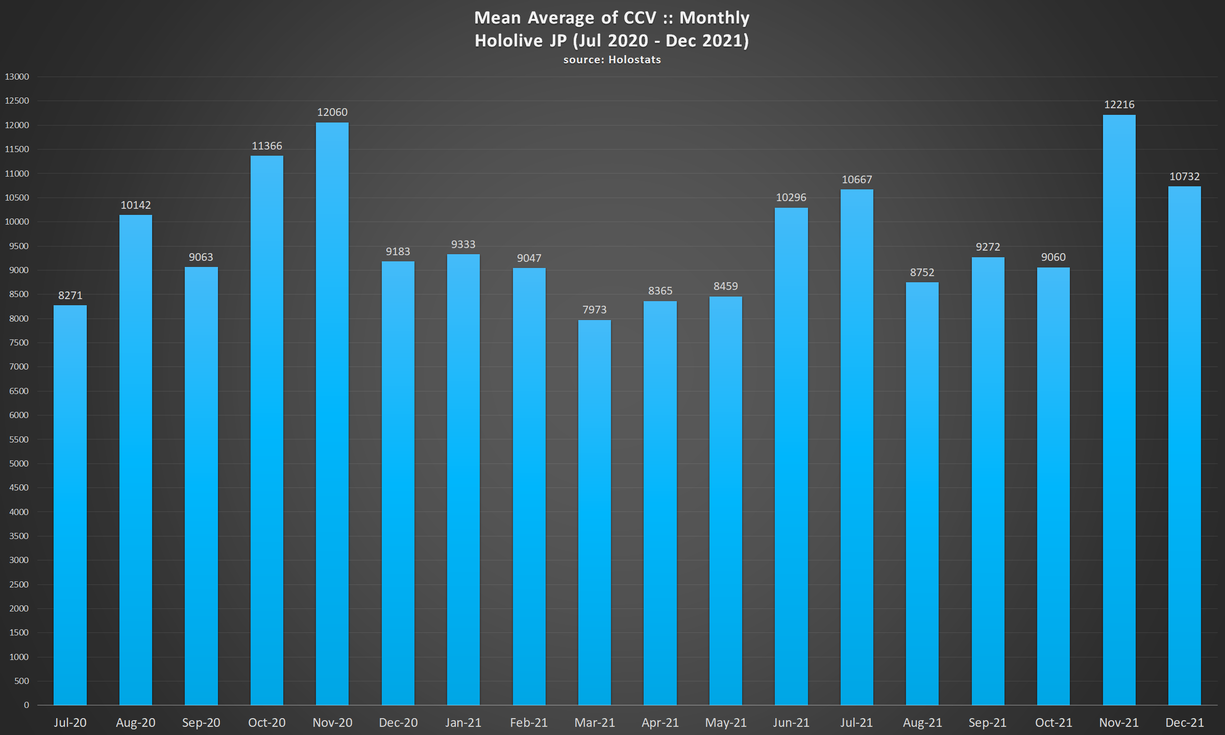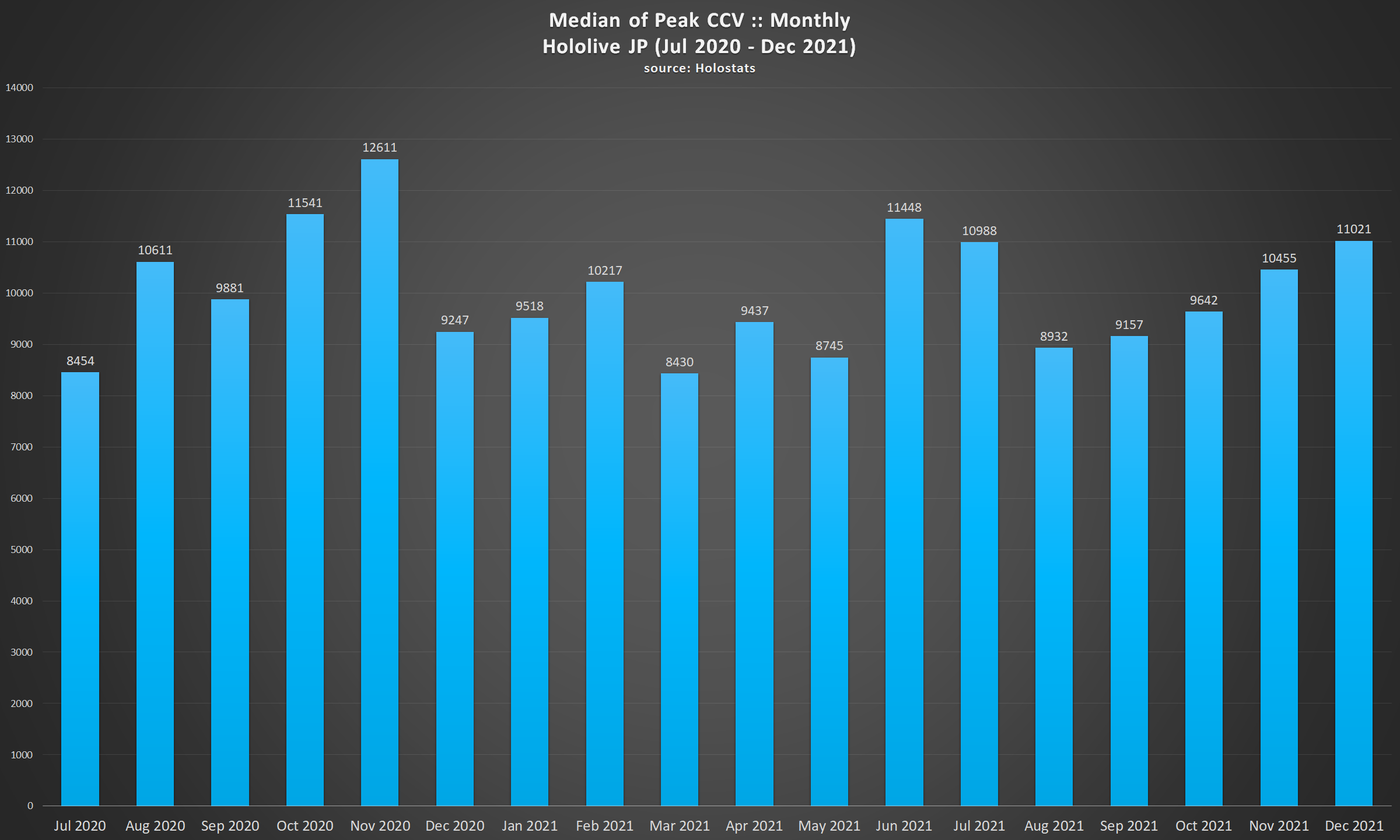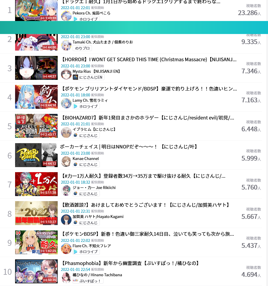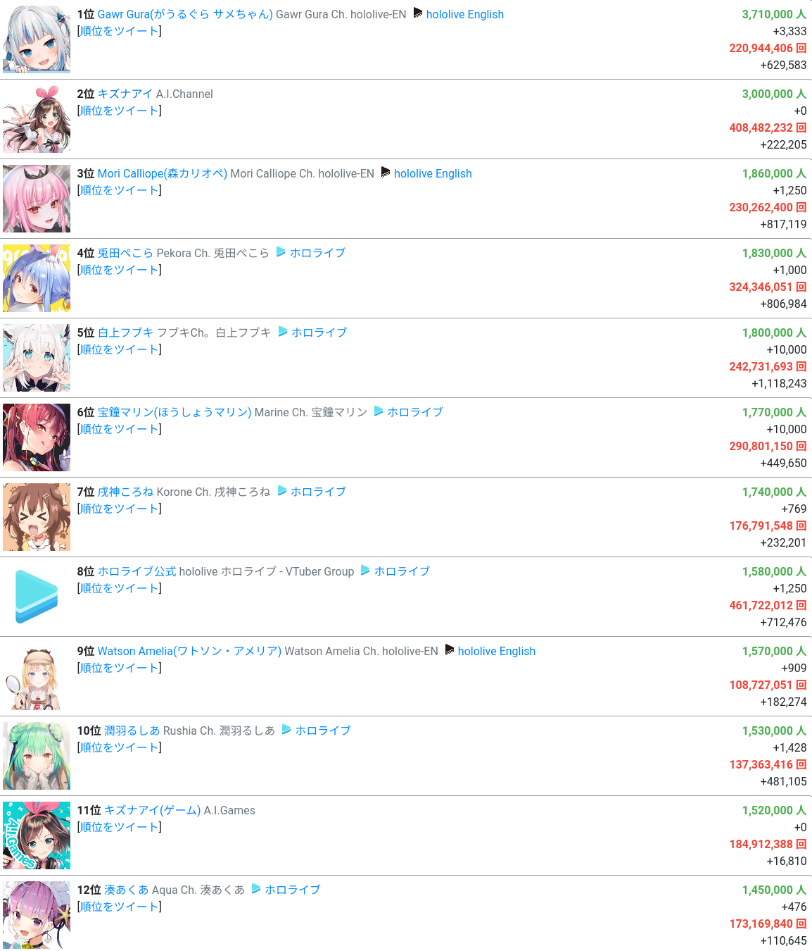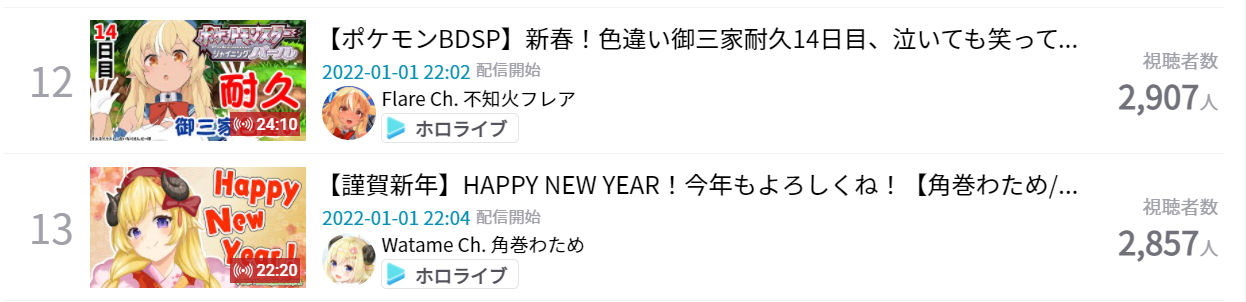 9) Aruran, despite having the most streams by any of the streamers of both companies, is the lowest ranked Hololive Productions member