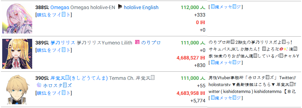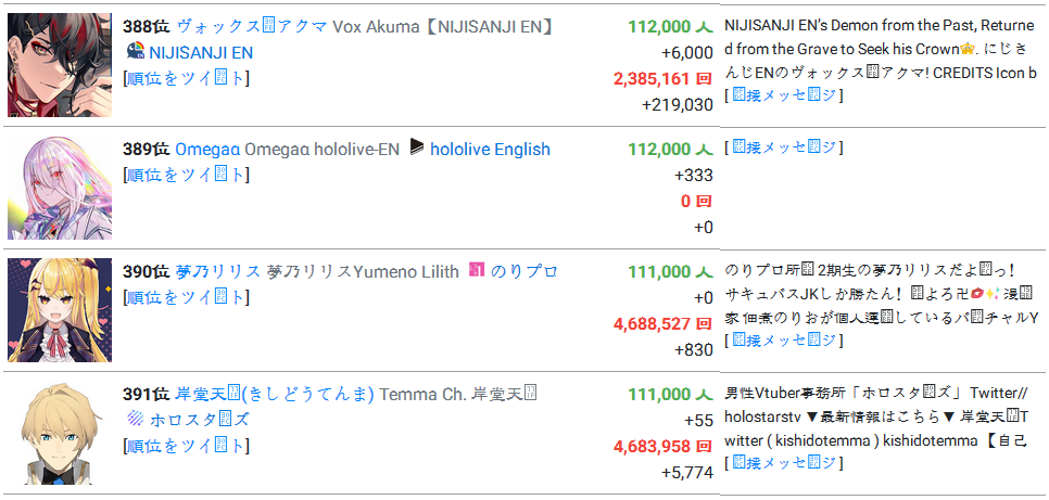 1) Vox Akuma, as well, finished ahead of Sana, being the second highest ranked NijiEN
