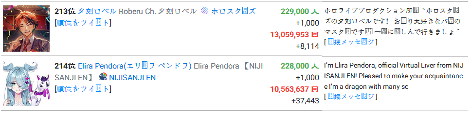 6) Hajime was once again the lowest ranked NijiJP because the other low ranking didn't stream five times this month to be ranked