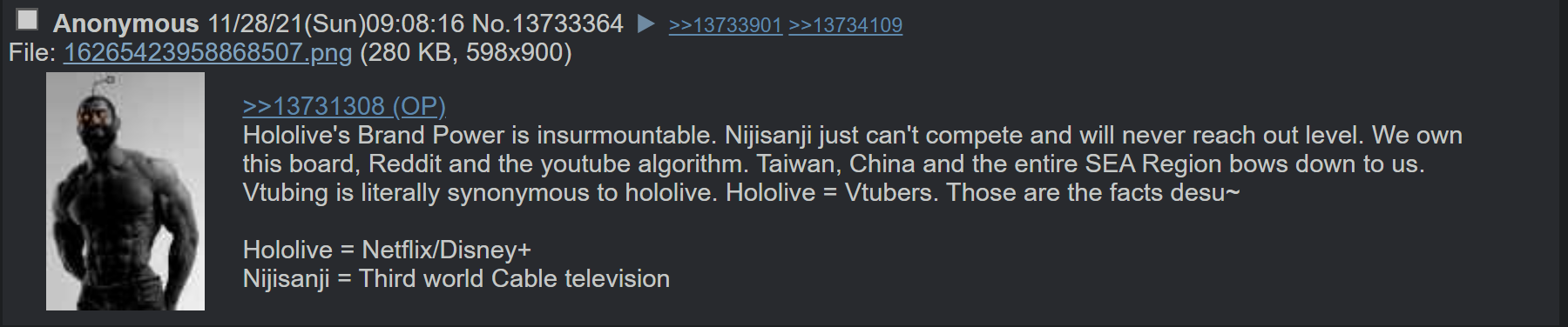 [19 / 13 / ?] 49KiB, 523x587, G3199.jpg View SameGoogleImgOpsiqdbSauceNAO Thread Reply Original Report Media View Same Google ImgOps iqdb SauceNAO Download Anonymous Sat 15 Jan 2022 12:19:13 No.16453901 View ViewReplyOriginalReport Quoted By: >>16454345 >>16456259 >>16460263 >History of vtubers? Ofc i know, it's all started with Hololive right?