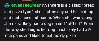- Her sense of humour, barring poop stuff, is weird, meta and anti-normie. (strongly indicative of INxx or ENTP)