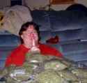 *Scalp hinges back for fireworks to pop out, panting loudly as tongue hangs out of mouth while breaking chair into pieces*