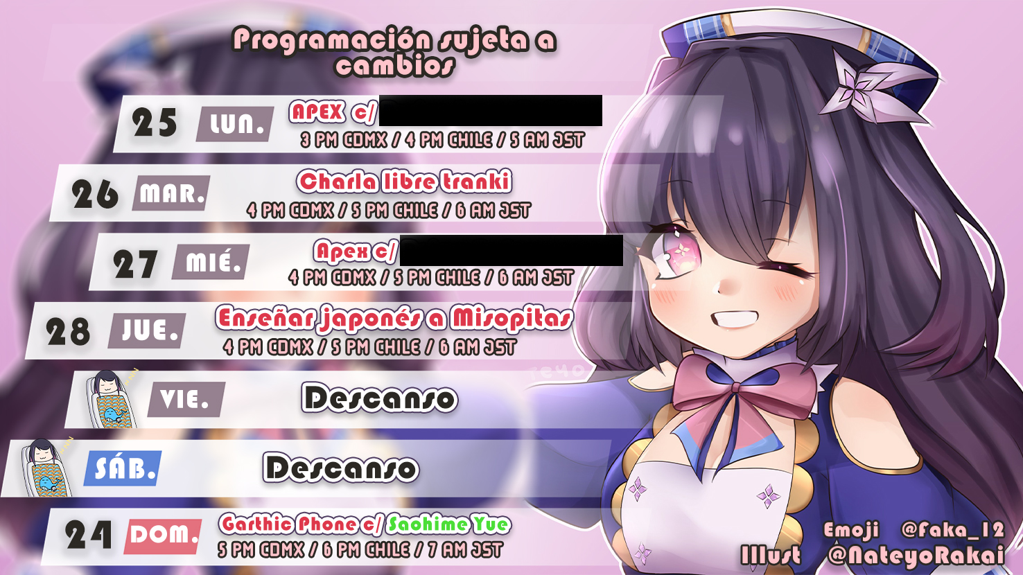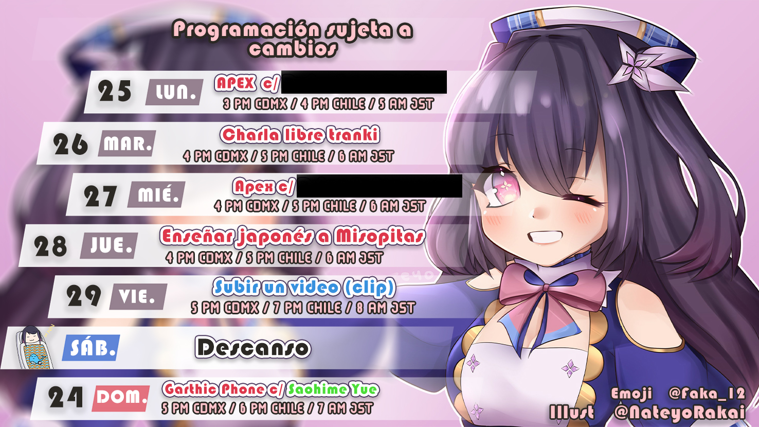 Suzu: Too busy for youtube, could appear on Saturdays.