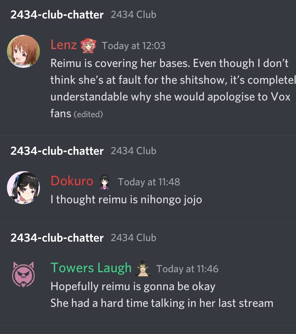 If anything, Reimu is so plain and inoffensive, there no reason to love or hate her. That's probably why she has the lowest audience in NijiEN.
