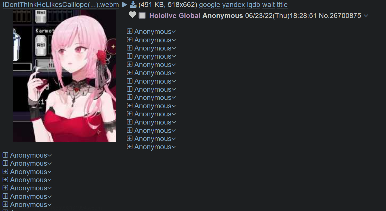 >>26704820The only "bitching" was a containment breaking shitposter sending Mori a 25 Canadian Dollar superchat being passive aggressive about her extracurricular activities that had an Ina profile picture
