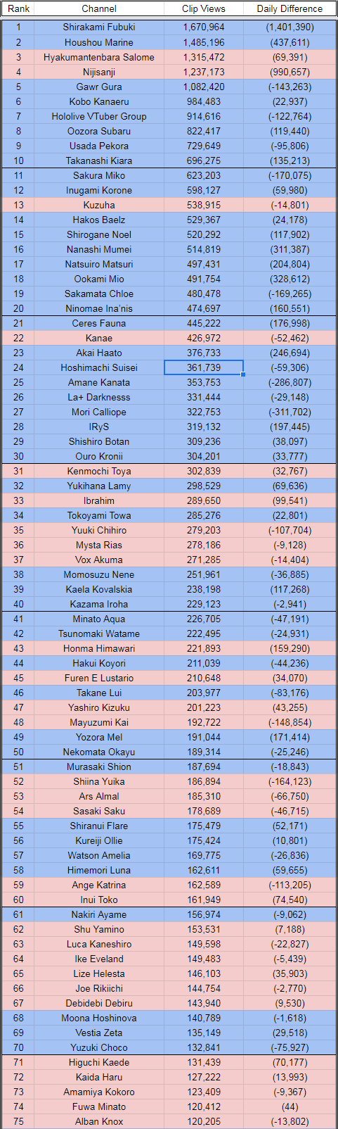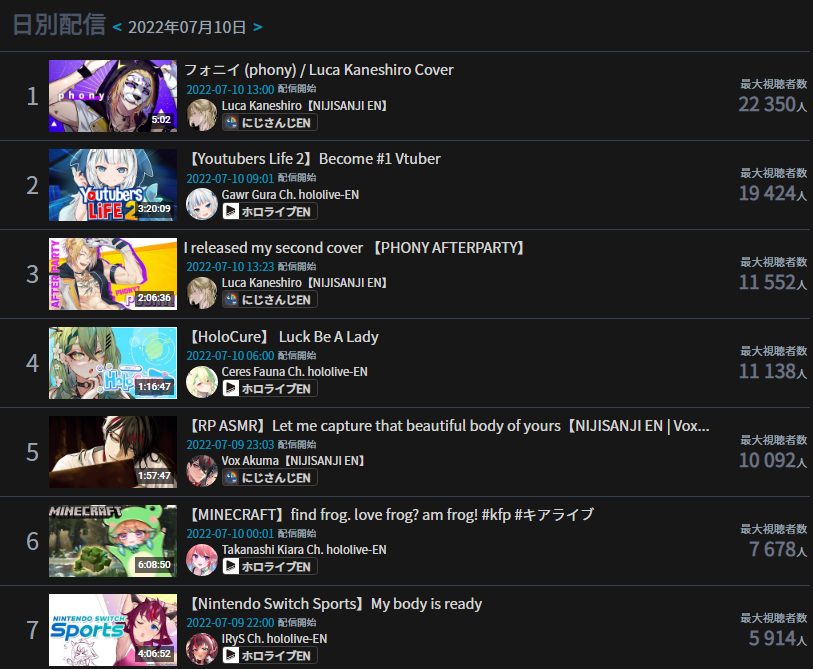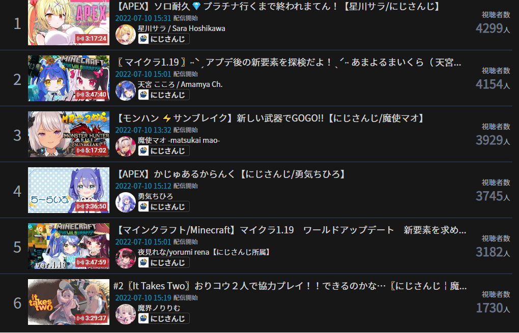 If there's any chart for non-big corpos? Or someone doing it for all Vtubers?