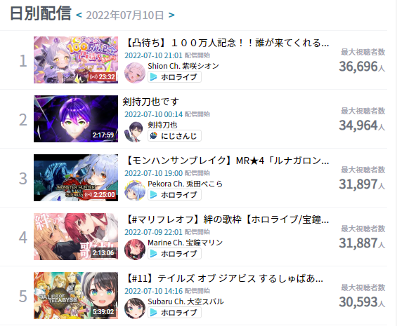 https://www.youtube.com/watch?v=YEalOf9lOPU5.Suisei - Stellar Stellar (~258,178)