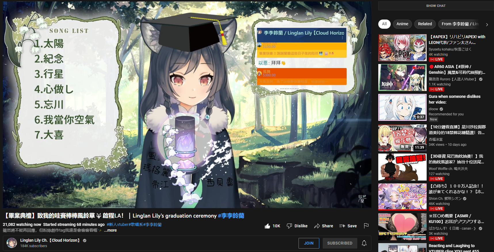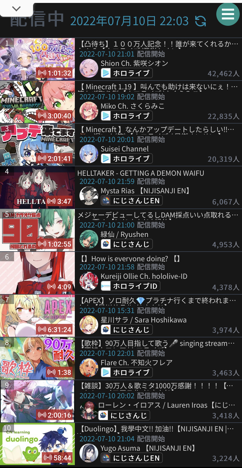 https://www.youtube.com/watch?v=Bd5iM3SfFqQ 10. Hololive EN - Ochame Kinou (197,355)