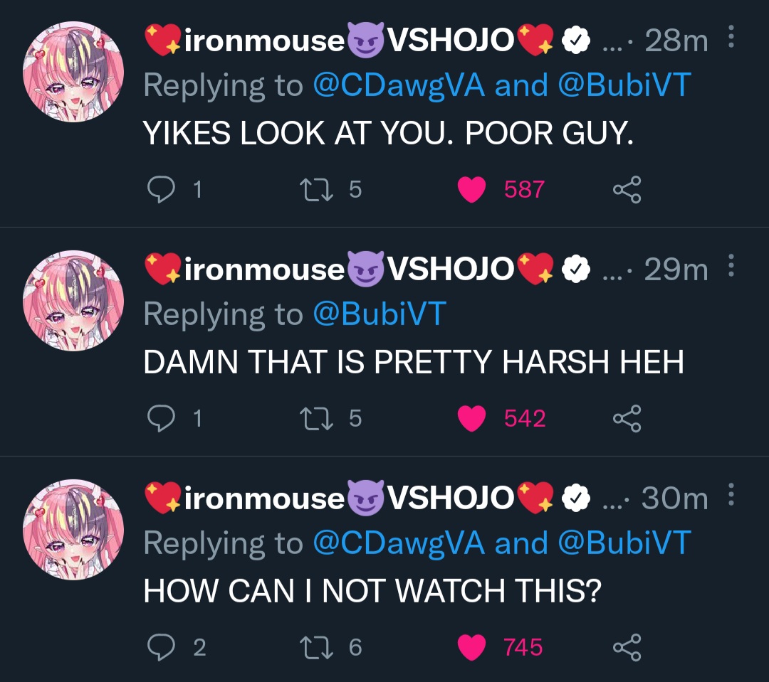 Quiet evening, but that's kind of okay. Because really funny stuff is happening elsewhere. Look at the last thread for more or go back a few more threads for general VShojo info. Until next time make sure to keep things comfy and civil by ignoring and especially reporting bait, and being excellent to each other.