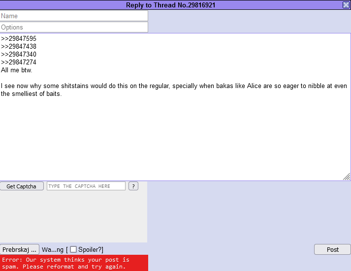 >Please refrain from posting if you are intoxicated.