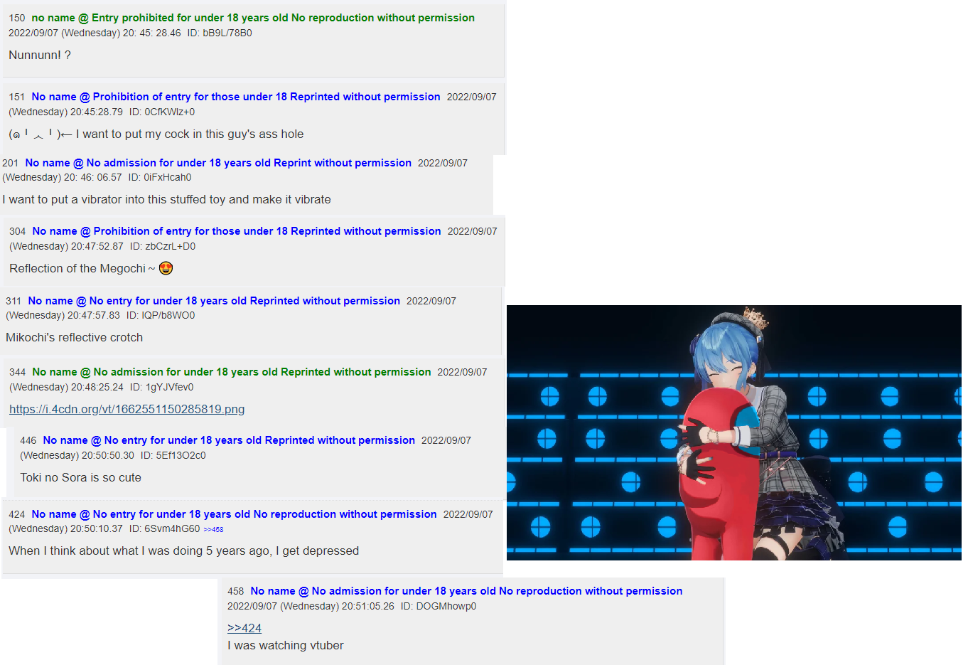 Imagine Koyori asking (You) to fuck her because she's in heat. She gives you a mysterious liquid, but she tells you to drink it when you're already starting to fucking her. She starts to undress (You), except of your boxers, then she ask (You) to remove all her clothes, except her pink bra and her pantyhose. (You) start to massaging her breasts and then, with your own hands, let her breasts out of her bra. She gets embarrassed, but asks (You) to suck on them. (You) accept, and with your mouth start to play with her nipples, making her more excited. But your senses tells you to start fingering her, so (You) make your way through her pantyhose, pull her black panties aside, and start using your fingers to satisfy her. Koyori starts making lewd noises, and she starts to drip pussy juices. All excited, Koyori tells (You): アノン、それは重要な研究をする時です、あなたのロッドを私の中に入れてください as she spreads her vagina. Seeing what is happening, (You) pull your penis outside your boxers and put it inside her vagina. With her yandere face, she reminds (You) to drink the formula from before. As (You) drink it, the results are immediately visible: your penis grows bigger and thicker, almost twice of your original size. Koyori looks how your penis grew bigger. (You) take her from her legs and start thrusting, feeling Koyori's insides with your penis. After a while, Koyori rises up and pushes (You) to your back, and she takes advantage to ride you while she puts a yandere look, trying to take your milk away. She bounces on your penis softly, and quickly between times, until (You) start feeling that you're about to cum. Seeing this, Koyori replies: 続けて、私の中でそれをしてください。 それは私の研究にとって素晴らしい発見になるでしょう。Motivated by this, you let all your cum inside Koroyi, while she screams of excitement. (You) pull out your penis out of her vagina, and your semen is still coming outside her.