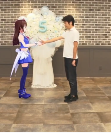 Tired, Koyori hugs (You) and kiss you in your lips, cuddle together, and tells you: この重要な研究を手伝ってくれてありがとう。 私の研究室のパートナーになって、このような研究さらに行うことができます。(You) gladly accepts, hold hands together, and kiss again.