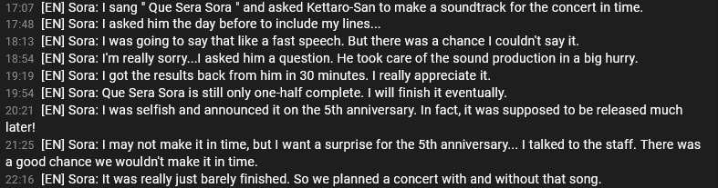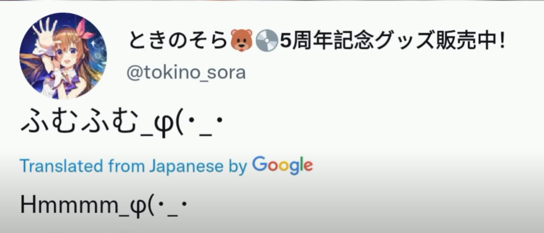 https://www.youtube.com/watch?v=TjGC7Jzc5ns>Hololive Story with Yagoo! - Holopro's 5th Anniversary Special: "Tokino Journey" [has EN subtitles] https://www.youtube.com/watch?v=aVSEJ_Qs2Gk>Latest Cover: "Harmonia" with AZKihttps://www.youtube.com/watch?v=tvsvKCHyvPw>Mangahttps://twitter.com/i/events/1270094240119271426>Fangamehttps://bugzyfloaty.itch.io/sora-game-=-=-=-=-=-=-=-=-=-=-=-=-=-=-=-=-=-