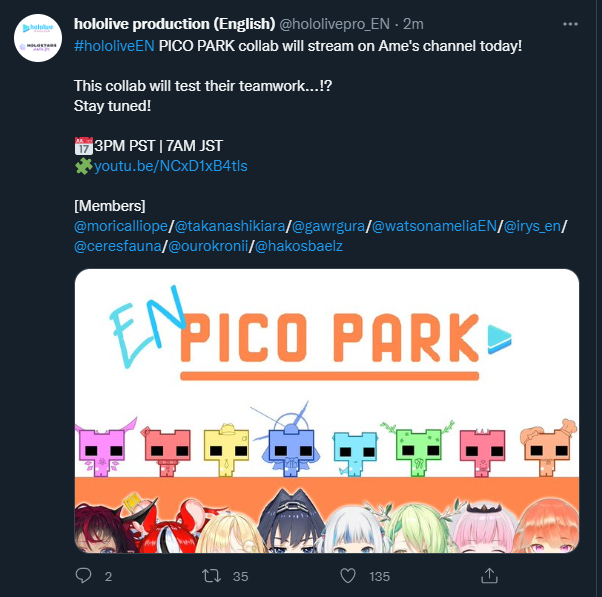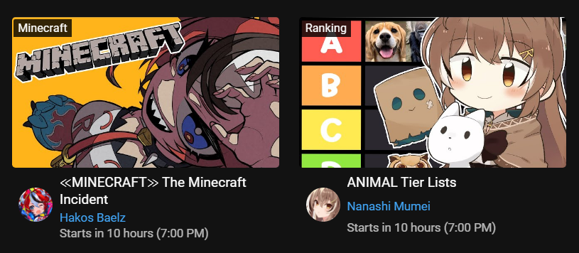2x: Ange, Botan, Ibrahim, Korone, Koyori, Lui, Maimoto, Mel, Mito, Mori, Mysta, Shion, Sora, Tsukasa