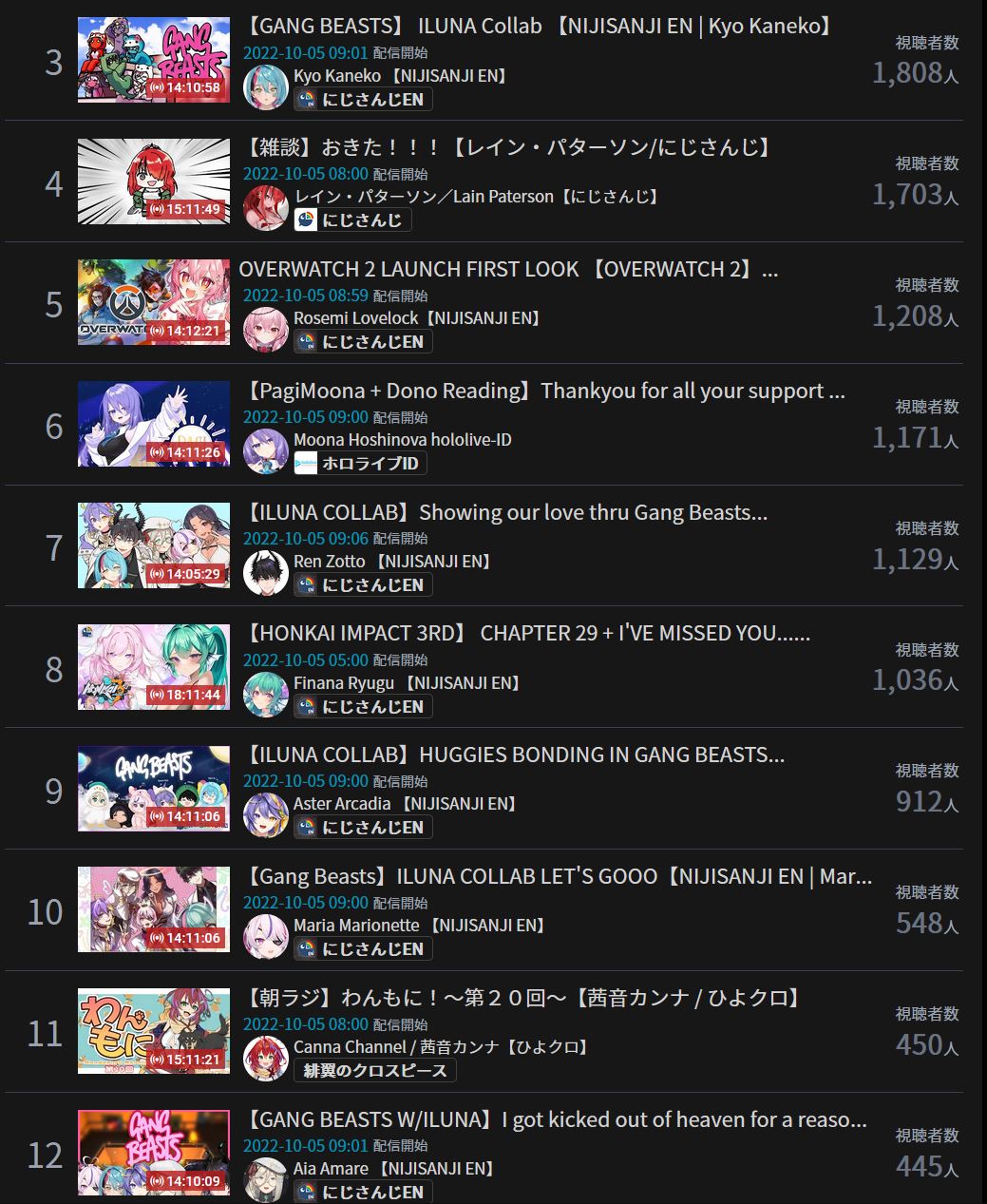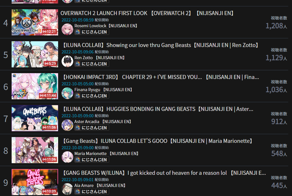 >>34559587>OCTOBER 2022 GOLDS1) Nijisanji (Nijisanji) - 127,960 - Nijisanji 4th anniversary live day 2 free part