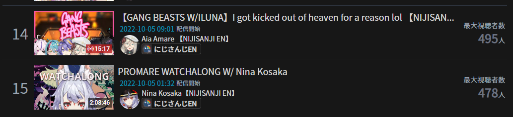 >PER STREAMER2x: Nijisanji