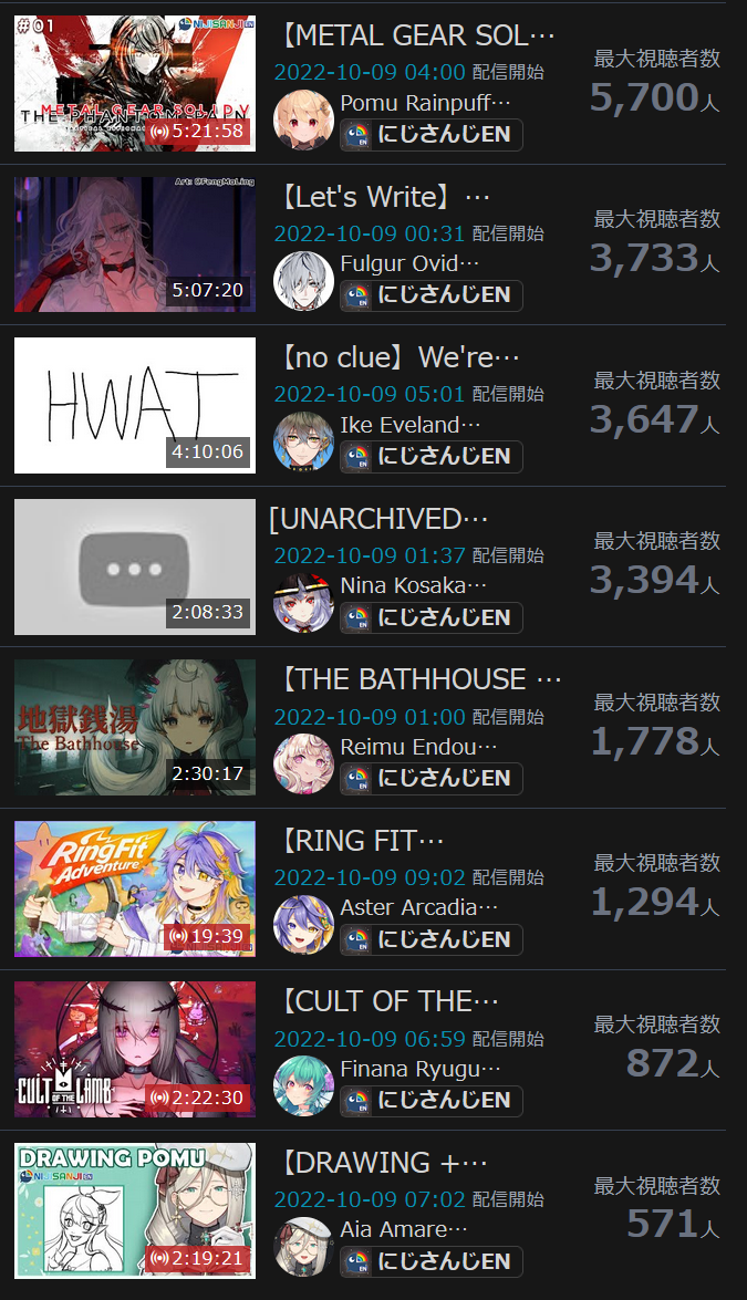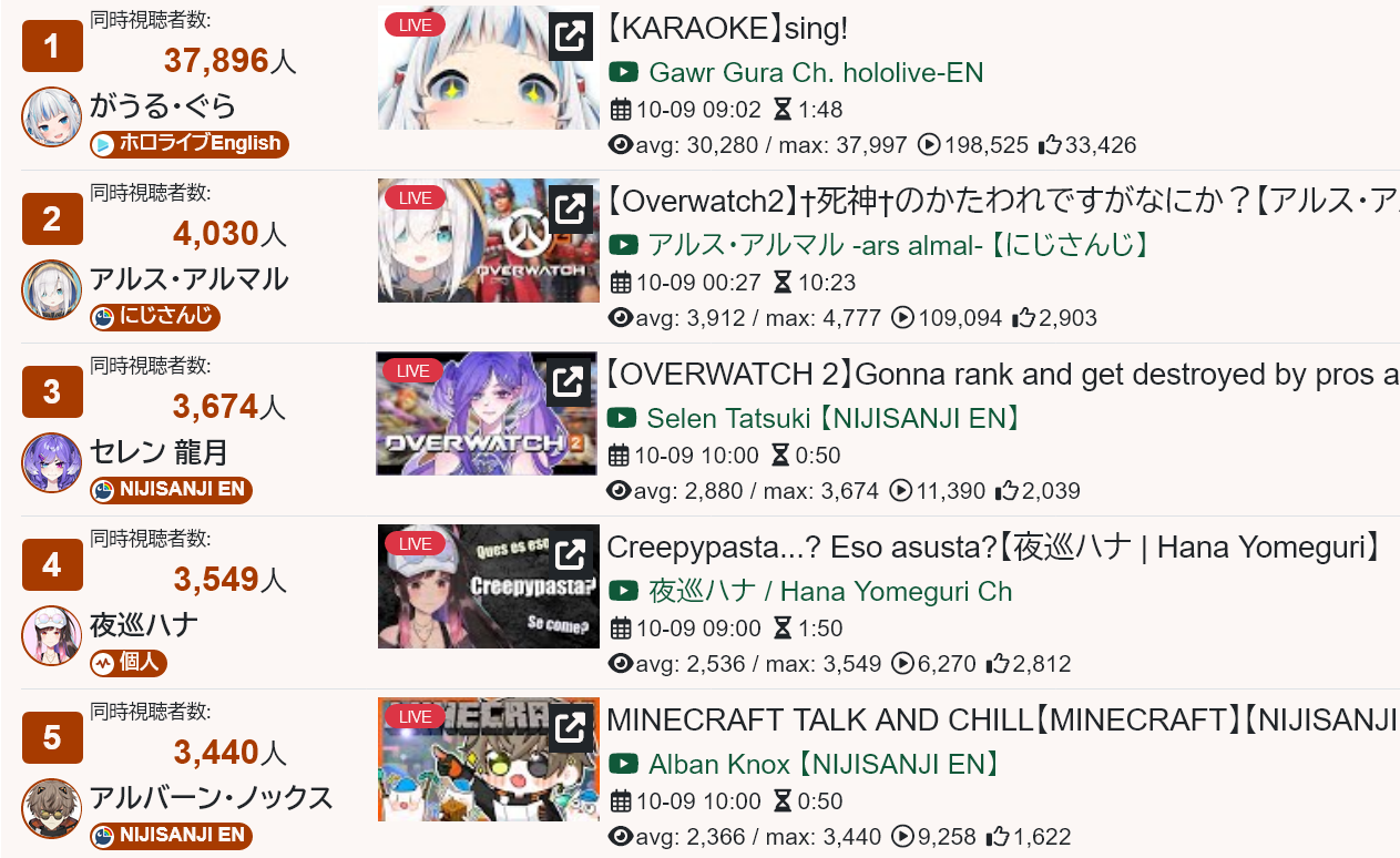 8) Vox (Nijisanji) - 49,359 - Return karaoke