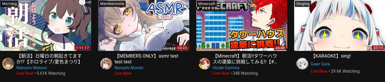 5x: Gura, Mio, Suisei, Toya