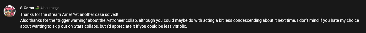 >>35393801While I agree that this place is shit, this is also just really shitty timing. It was a bad week, a bad weekend if you actually expected her to make up for it(which is her own fault), and now the big WW bonanza is getting budged in on. It wouldn't be so bad if we weren't being actively sidelined right after she said we were the priority. She knows she's doing it, too, because she has a bunch of stuff she said she was gonna do but never gets around to actually doing, in her own words.