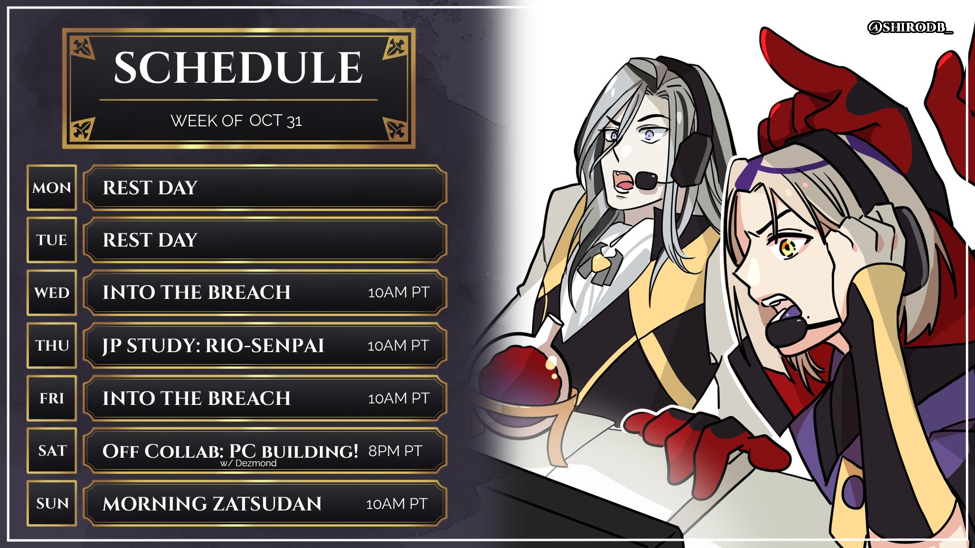 Schedule: https://teamup.com/ksvy41xvgrjjytwgd9