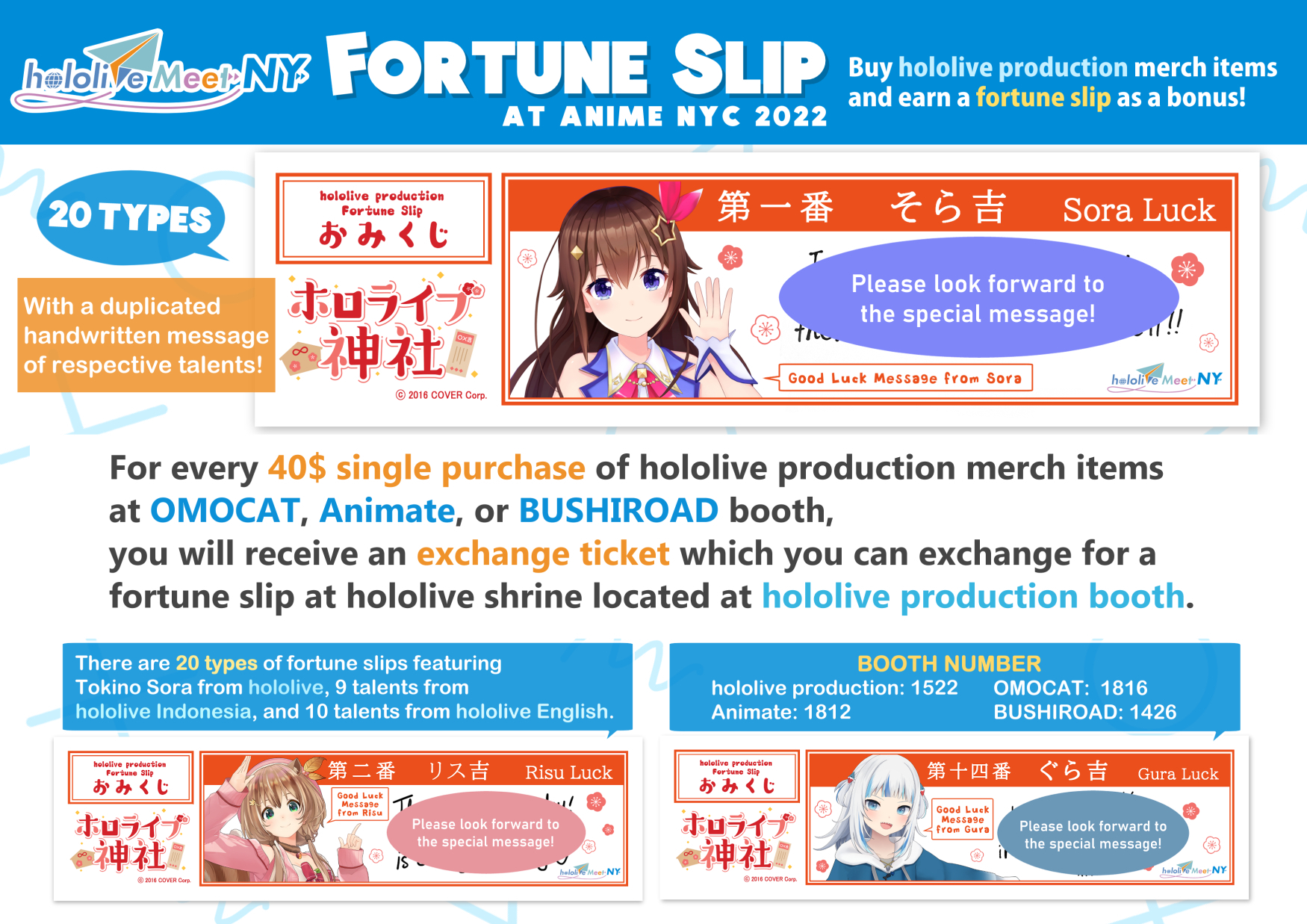 1x: AI, Aki, Axia, AZKi, Chima, Chronoir, Debi, Furen, Gwelu, Haachama, Hayase, Hoshikawa, Iroha, Kaida, Lain, Laplus, Leos, Luna, Masaru, Melissa, Mikeneko, Moona, Nagao, Naruse, Natsume, Ren, Roboco, Rushia, Sana, Sango, Selen, Shiina, Sukoya, Ui, Watame, Yorumi, Zeta