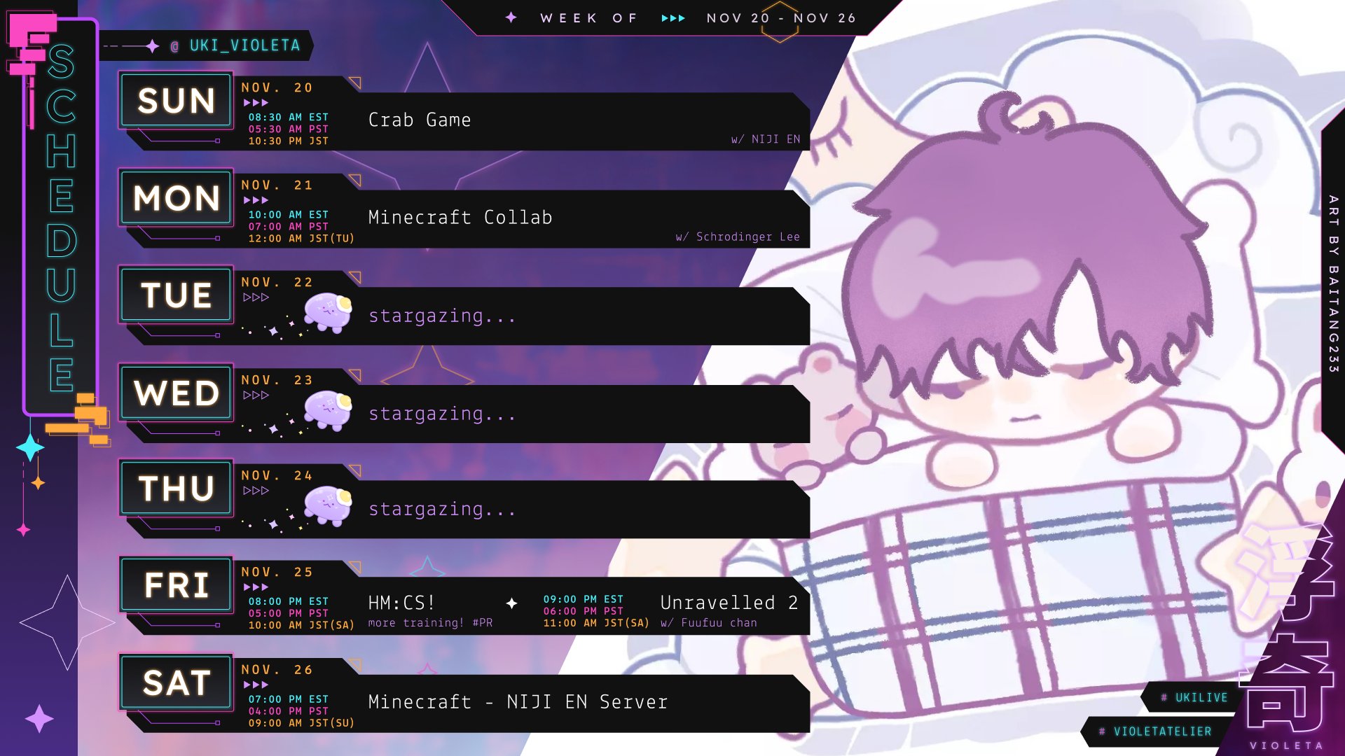 Teamup schedule for Nijisanji EN: