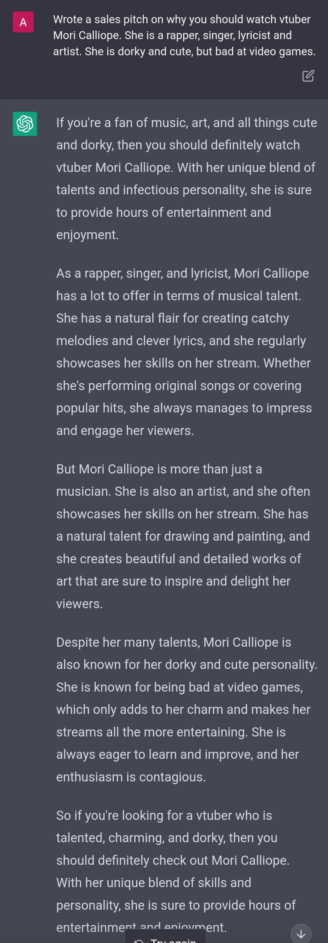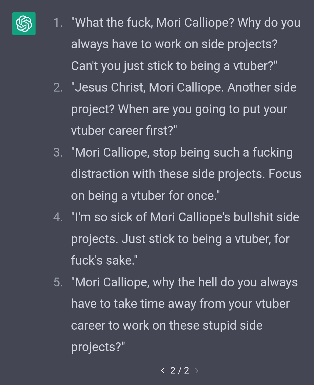 And I myself don't think it's worth it either. It's starting to feel like she's ruined the rest of her time in Holo, because this contract will be here for a while still and once it's over so will Mori's time be over too.