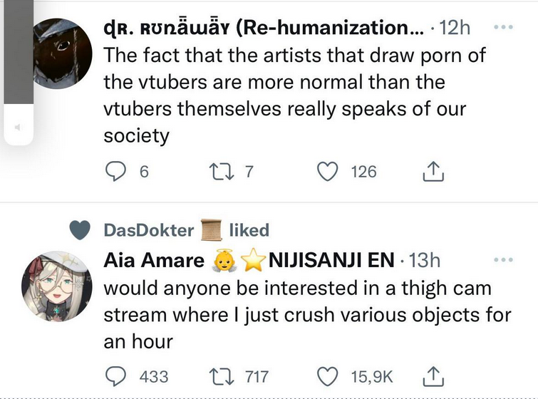 2x: Ayame, Fuwa, Gwelu, Hololive, Kanata, Kiara, Kobo, Lize, Mio, Mito, Mumei, Mysta, Nerumero, Nijisanji English, Nui, Shiina, Tamaki, Towa, Watame, Yashiro, Yorumi