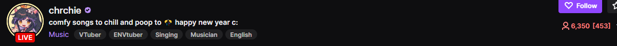 6: https://twitch.tv/chrchie (2,337)