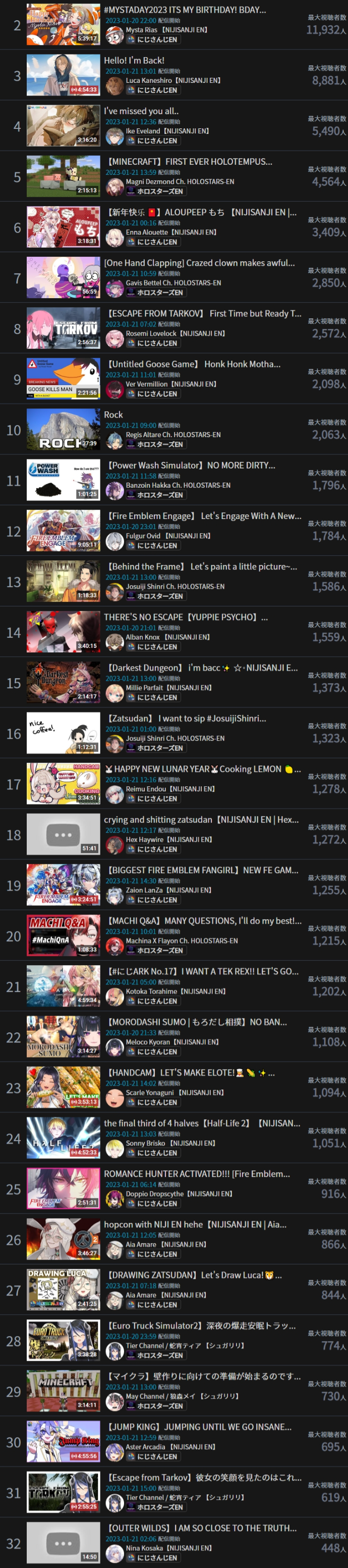 >while EN3 is streamingNot for long. Once the most popular ones get a whiff off the holo merch money and see how they can copy their senpais that don't stream and still earn mad membership bucks, they are not going to spend more time faking their voice and enthusiasm for games they don't care in front of incels. The EN work environment is too toxic with too many rotten apples that will inevitably poison the new basket.