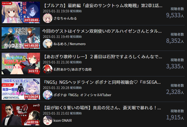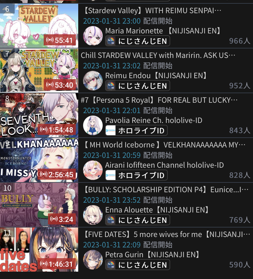 8) Nijisanji (Nijisanji) - 122,719 - Niji Mahjong Cup 2023