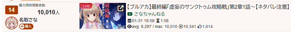 20) Roco (Nijisanji) - 69,519 - Debut stream