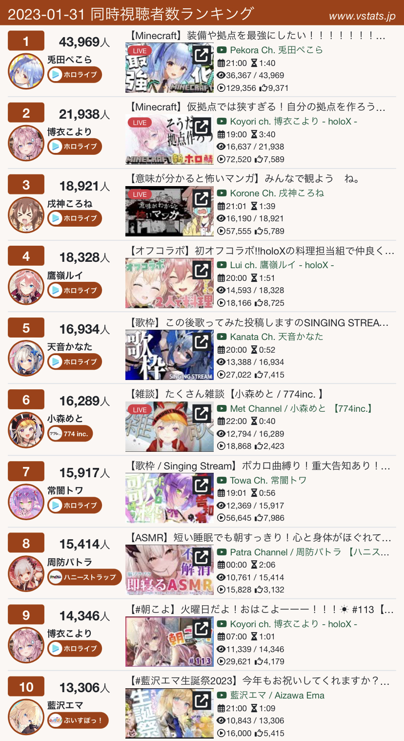 24) Pekora (Hololive) - 38,726 - Minecraft