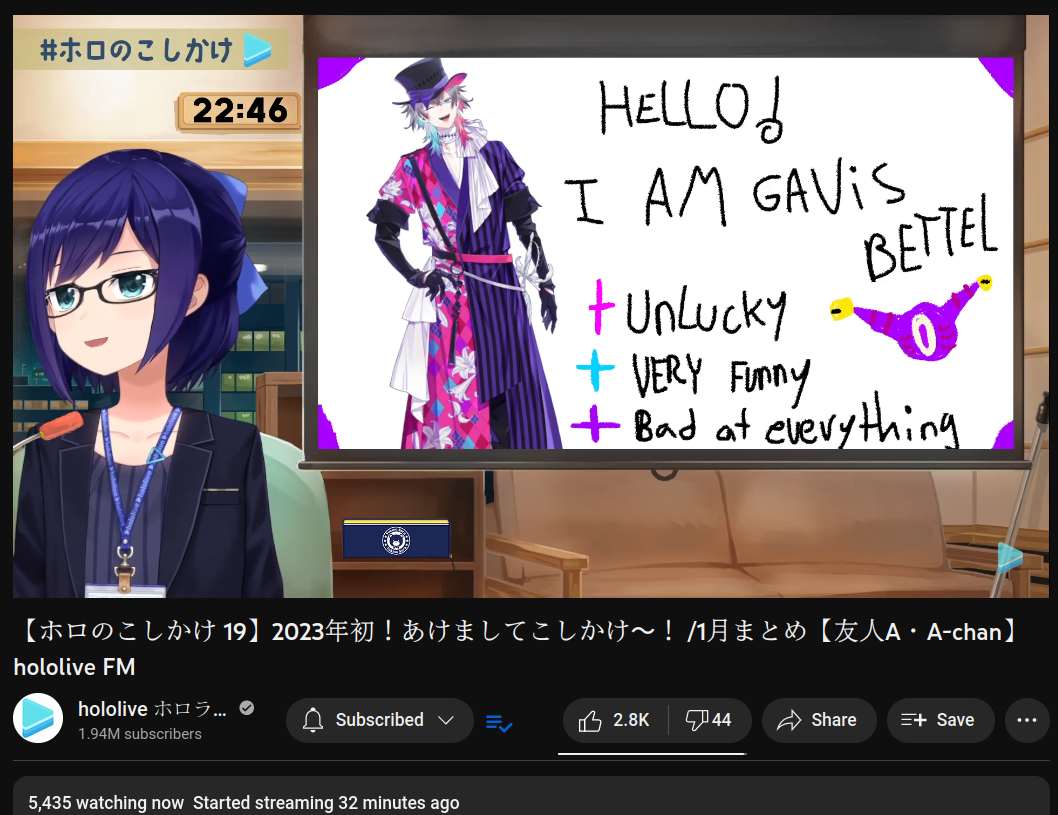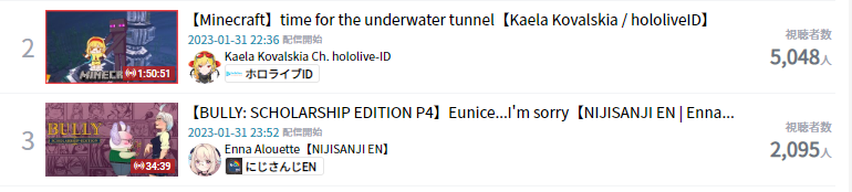 >>42097426>JANUARY 2023 GOLDS1) Hololive (Hololive) - 142,855 - Human Rabbitality Project